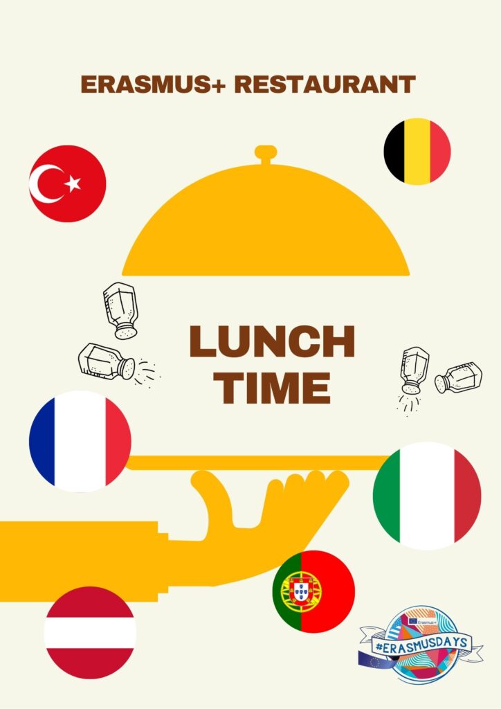 A Taste of Europe is an international cultural and culinary event organized as part of Erasmus Days. Through this activity, we celebrate diversity, unity, and friendship among six participating countries — Portugal, Italy, Turkey, Austria, France, and Belgium. Each country presents its most famous traditional dishes, allowing participants to experience the rich flavors and unique culinary heritage of Europe. The event aims to bring people together around one table, promoting intercultural dialogue, mutual understanding, and the true spirit of Erasmus+: sharing, learning, and connecting.