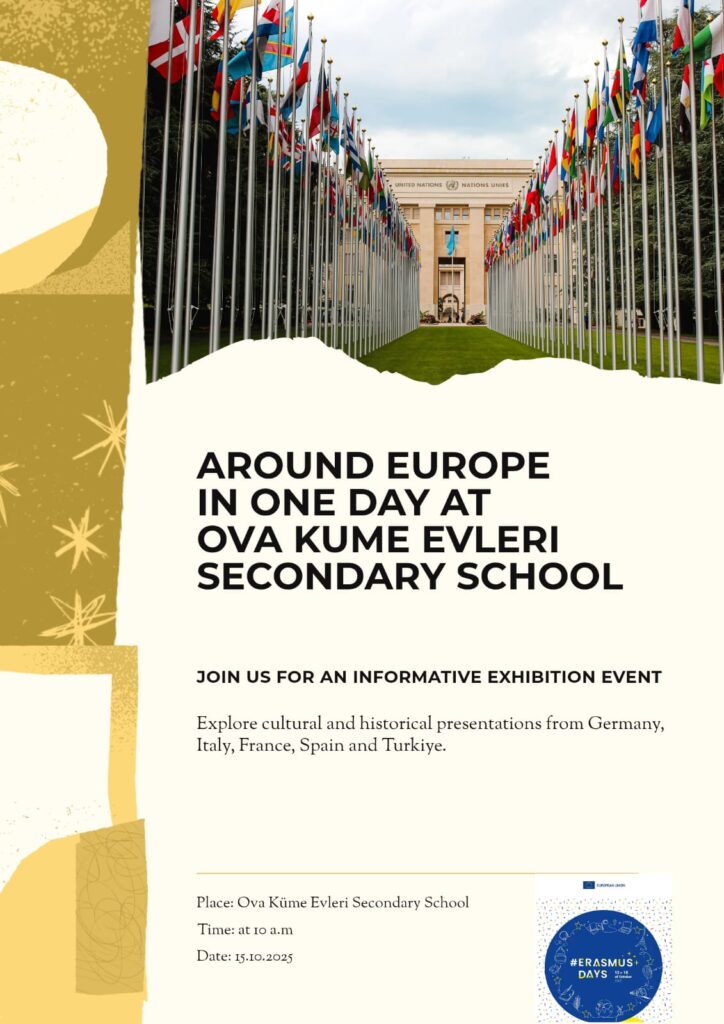 As part of Erasmus Days, our school will offer students a “European Tour” experience. The activity will feature 5 different tables, each representing a different country. At each table, students will explore: