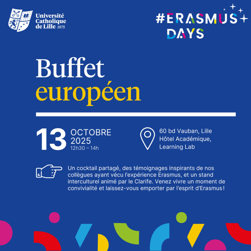 Un cocktail partagé, des témoignages inspirants de collègues partis en mobilité Erasmus, et un stand sur l’interculturalité. Laissez-vous porter par l’esprit Erasmus !