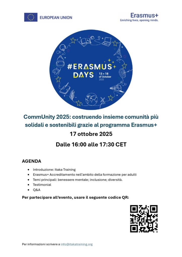 #ErasmusDays #ErasmusPlus #ItakaTraining #AdultEducation #CommUnity2025 #ItakaConsortium #Inclusion #Sustainability #Wellbeing