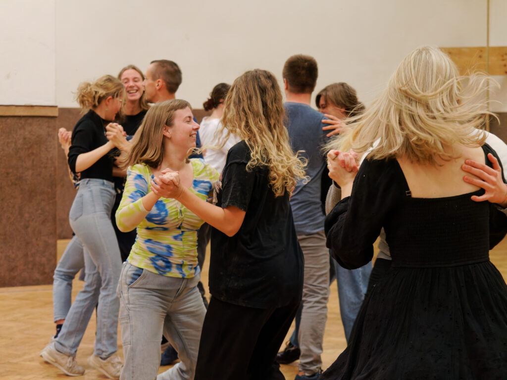 Incoming and local Erasmus students learn each other’s national dances.
