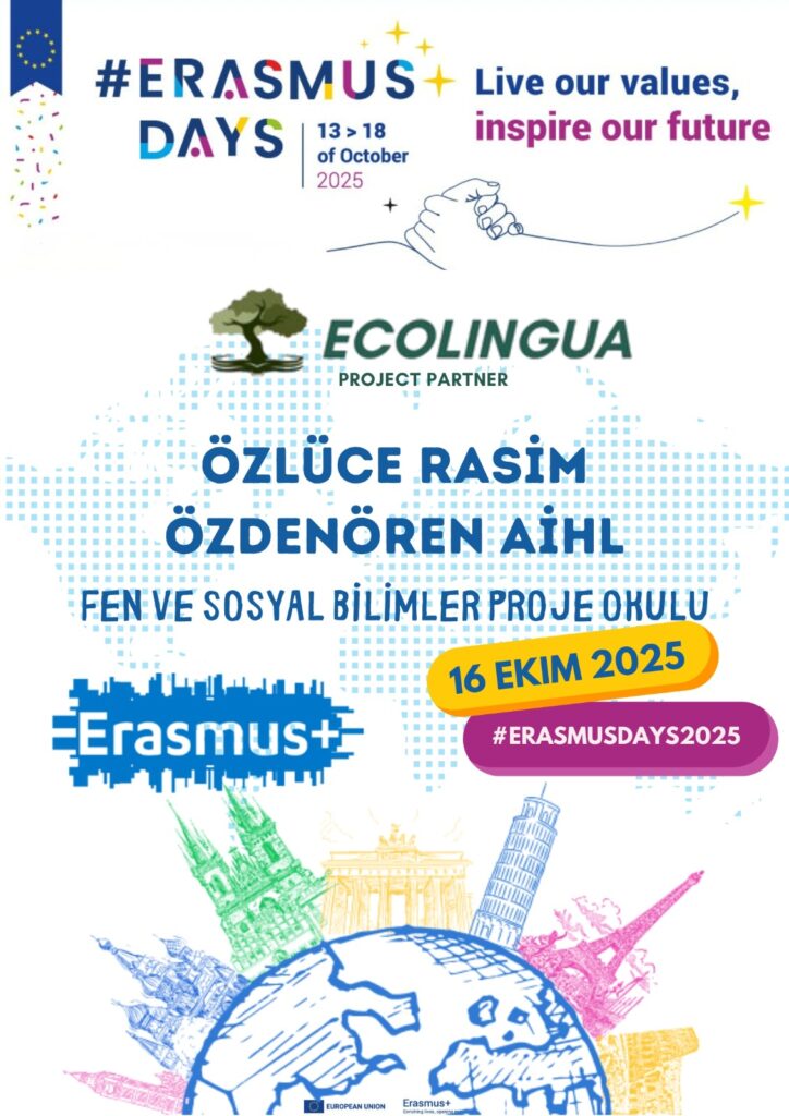 The Erasmus Days Event at Özlüce Rasim Özdenören AİHL aimed to promote Erasmus+ values and international cooperation. The program included an opening speech, Erasmus Days introduction video, presentations of previous Erasmus+ K210 and ongoing Erasmus+ K220 “Ecolingua” projects, an interactive ecology-themed language activity, and testimonies from former Erasmus participants.