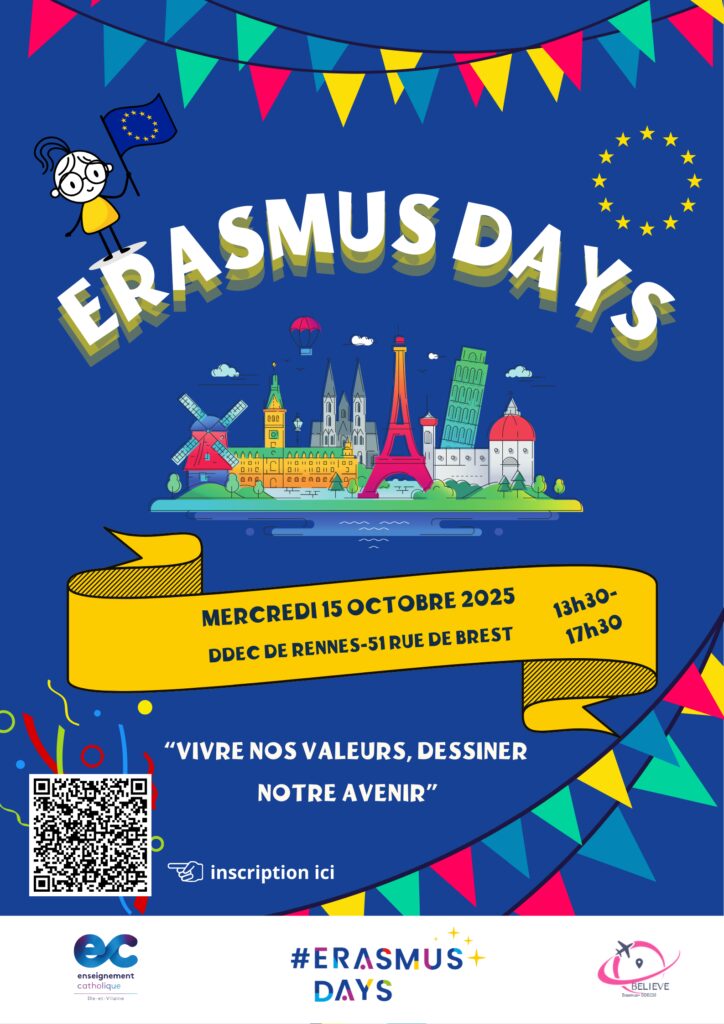 Evènement ouvert aux enseignants et élèves des écoles, collèges et lycées du réseau de l’Enseignement catholique d’Ille-et-Vilaine. Présence de partenaires locaux: Maison de l’Europe, Canopé, ISFEC…