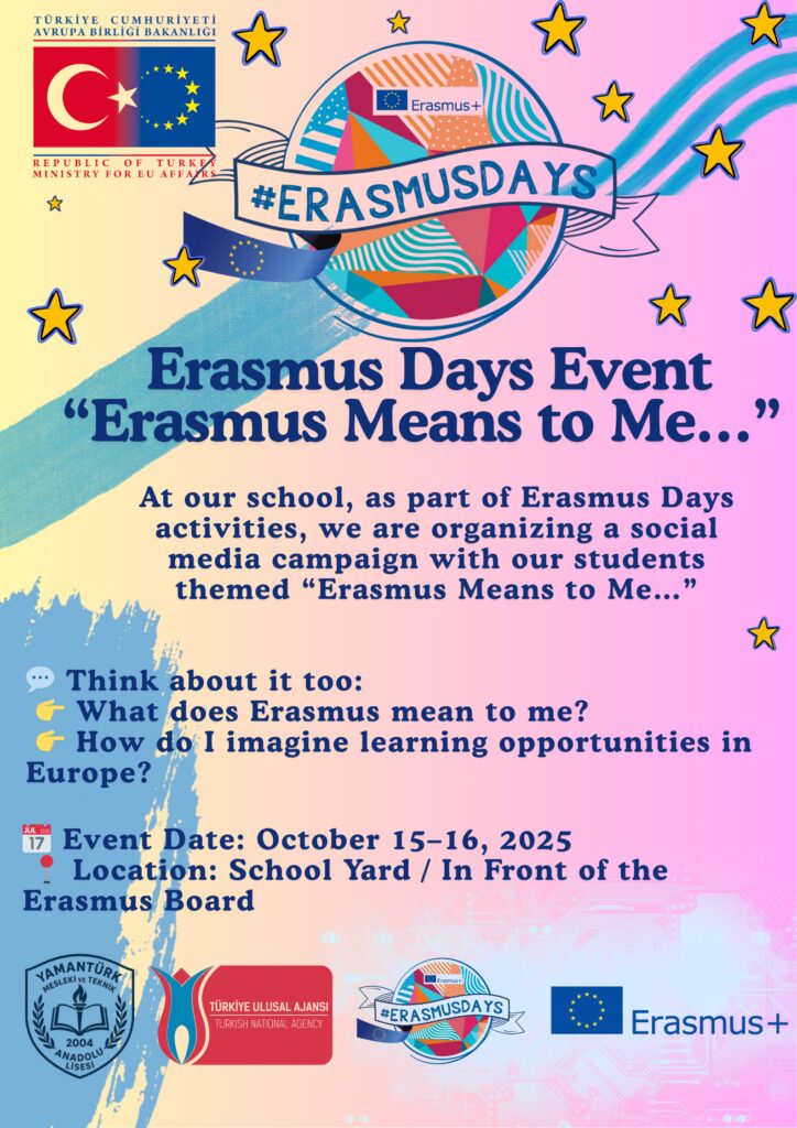 As part of the Erasmus Days celebrations, a colorful and informative poster board activity will be organized at our school.