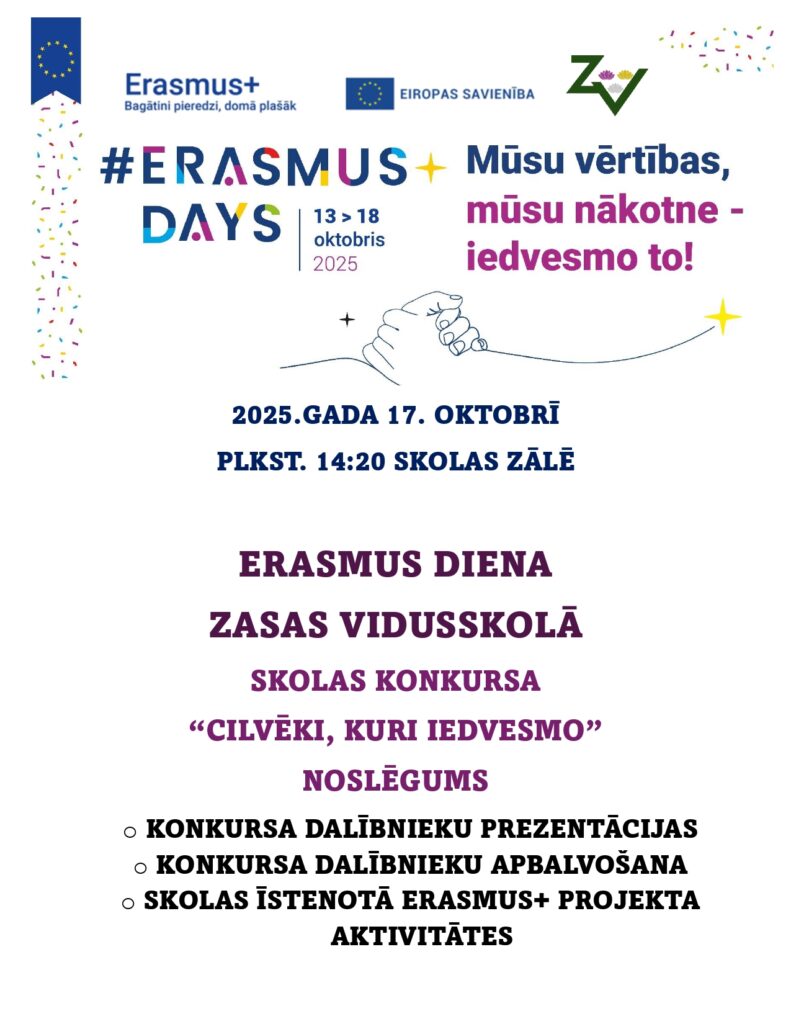 Skolas rīkotā konkursa “Cilvēki, kuri iedvesmo” prezentācija un dalībnieku apbalvošana, vienlaikus iepazīstinot ar Erasmus+ projekta šajā mācību gadā īstenotajām aktivitātēm.