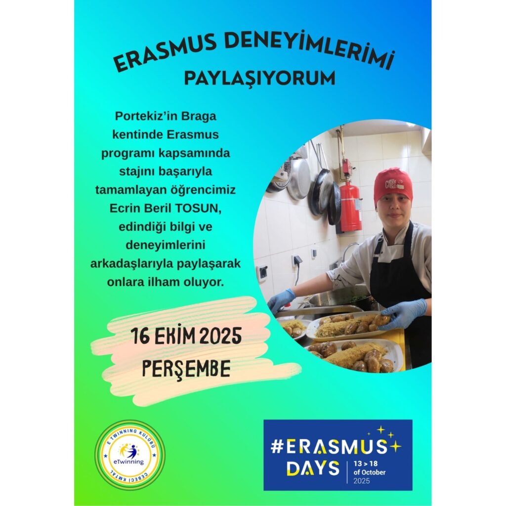 Portekiz’in Braga kentinde Erasmus programı kapsamında stajını başarıyla tamamlayan öğrencimiz Ecrin Beril TOSUN, edindiği bilgi ve deneyimlerini arkadaşlarıyla paylaşarak onlara ilham oluyor.