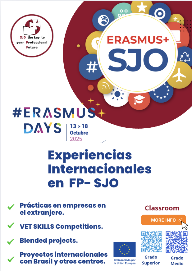 During Erasmus Days 2025, Sant Josep Obrer will present the results of last year’s Erasmus+ projects, with their impact reflected in the experiences of our alumni. Our middle-grade Administration students took part in VET skills competitions, practical mobilities, and collaborative projects with Brazil, and former participants will share how these opportunities have shaped their professional and personal growth while promoting core European values.