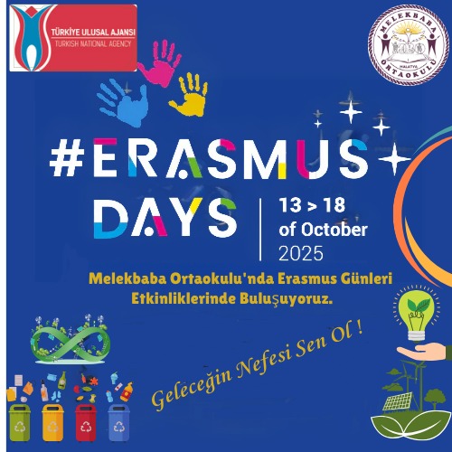 Melekbaba Ortaokulu olarak, Erasmus Days kapsamında “Geleceğin Nefesi Sen Ol” projesi ile öğrencilerimizi çevre bilinci ve sürdürülebilir gelecek konusunda bilinçlendirmeyi amaçlıyoruz. Bu amaçla birçok alana hitap eden etkinlikler düzenlenecektir.
