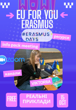 The event is planning to be held by Young European Ambassador Viktoriia Pustova via Zoom platform. During this event I plan to tell youth all about Erasmus, its directions (Erasmus+, Erasmus Mundus, youth exchanges, academic exchanges, Jean Monnet). Through my event yputh will get chance to dive into the world of opportunities suggested by Erasmus. Moreover, I’ll give dozens of websites where to search an information. I’ll share NGOs channes, instagrams and websites. It’s a unique step-by-step virtual guide. I hope to raise awaireness about such EU program. In addition I’ll share my own experience on participating into Erasmus+ youth exchanges, my academic journey and my Jean Monnet projects. I ‘ll thoroughly anwer all the questions from participants. Hope we will spend the time of our lives!