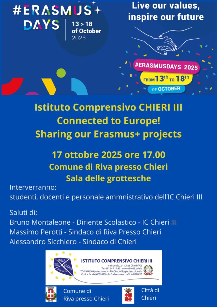 Istituto Comprensivo CHIERI III connected to Europe! Sharing our Erasmus+ projects