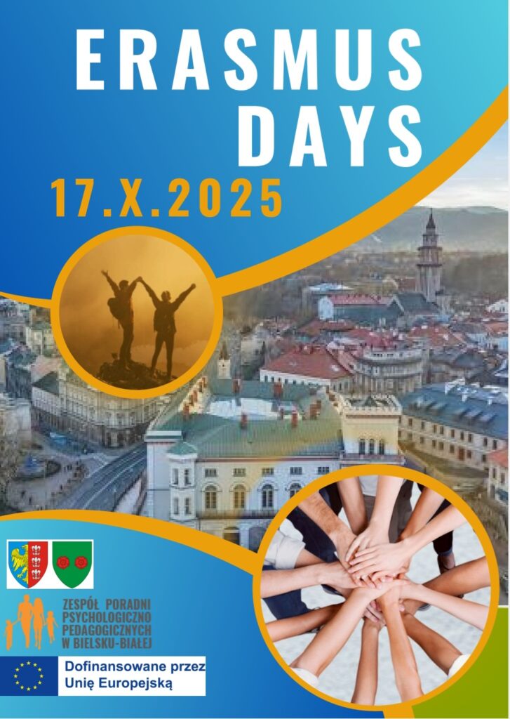 W ramach Erasmus Day chcemy przedstawić rezultaty ukończonych projektów oraz zachęcić rodziców -klientów Poradni do kolejnych działań ,które planujemy w ramach przyznanej Akredytacji -planujemy prelekcję ,stoisko edukacyjno-informacyjne oraz 2 warsztaty dotyczące relaksacji oraz krytycznego myślenia